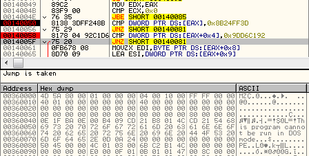 If all the checks passed, the application reads it’s own file from the disk and searches there for some typical markers. An example of the search:
