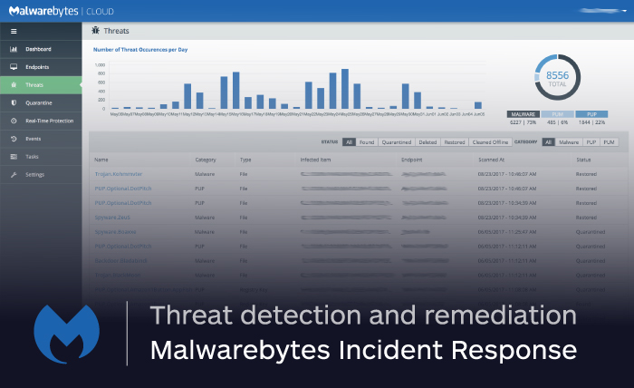 We recently announced Malwarebytes Incident Response, a centralized threat detection and remediation platform that helps businesses accelerate their response workflows for these types of threats while reducing attack dwell times. Malwarebytes Incident Response scans networked endpoints for advanced threats including malware, PUPs, and adware, and removes them.