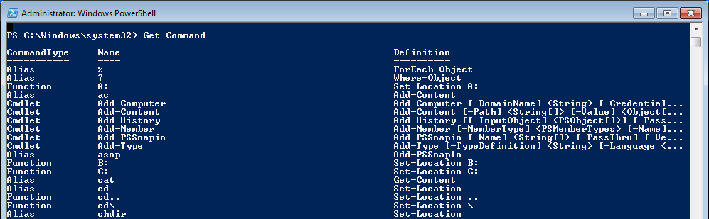 But let’s start with the basics first. PowerShell uses so-called cmdlets. These cmdlets typically perform a task and return a .NET object that can be piped to the next command. They are NOT standalone executables like some of the commands that we used in the command prompt, but rather .NET framework classes.