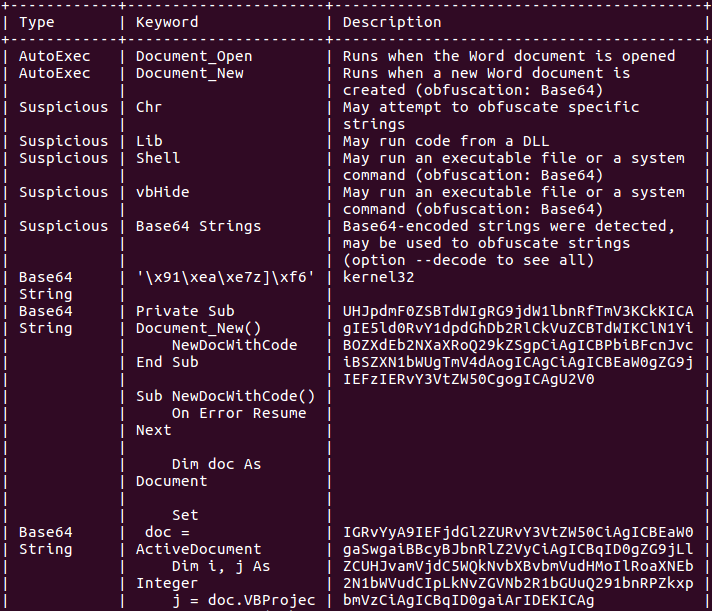 OLE:MAS--B-- target.doc (Flags: M=Macros, A=Auto-executable, S=Suspicious keywords, B=Base64 strings)