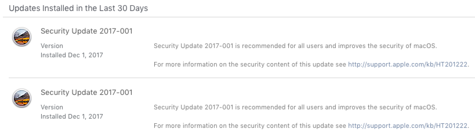 Remember how we said that Security Update 2017-001 could be applied to both macOS 10.13.0 and 10.13.1? What happens if you install the update on 10.13.0, then update later to 10.13.1? Turns out, it’s bad.