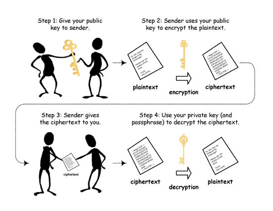 In encrypted communication that uses asymmetric cryptography, two keys are generated locally—the public key and the private key. The public key is available for the whole word to see. If someone wants to send a message that only one person (Bob) could read, they would encrypt the message using Bob’s public key. Because his public key cannot be used to decrypt the message, it is completely safe. Using his offline, private key, Bob would be able to decrypt the message and see the original text.