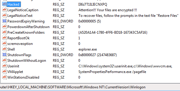 Looking at the changes made in the registry, we found more data left there by the ransomware, such as the unique ID of the victim: