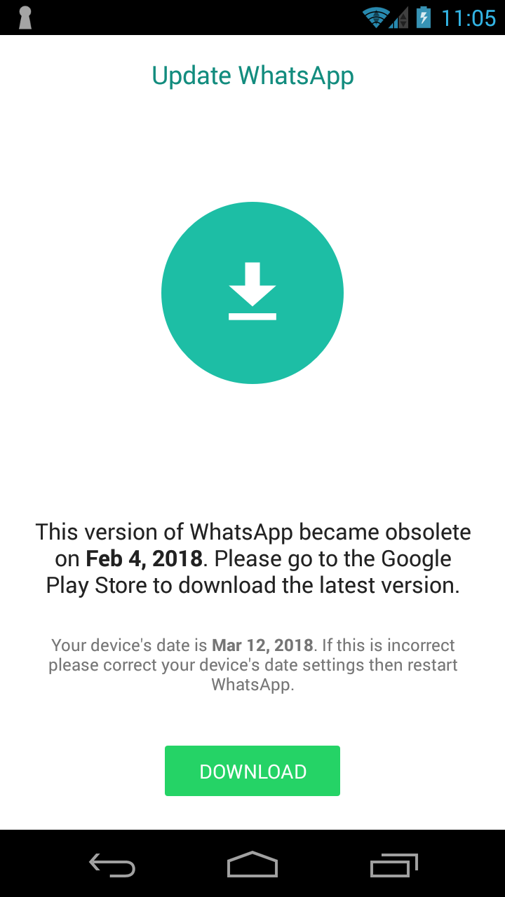 Clicking OK to the changelog, what appears to be a functioning version of WhatsApp opens.