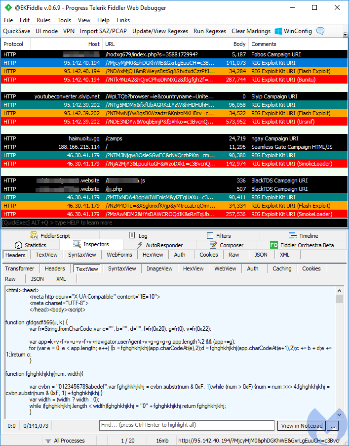RIG exploit kit remains the most commonly observed EK in the wild, with several different campaigns in action. RIG was the first to include the new VBScript engine exploit (CVE-2018-8174) in IE only days after a Proof of Concept became publicly available, on top of adding CVE-2018-4878. RIG has pushed various payloads such as Bunitu, Ursnif, and the popular SmokeLoader.