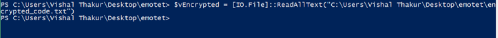 $vEncrypted = [IO.File]::ReadAllText(“absolute_pathencrypted_code.txt”)