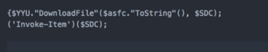 $SDC = $env:public + ” + $NSB + (‘.exe’);This variable puts together the absolute path for the payload, complete with the file name that is generated by variable NSB.