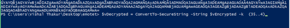 We will take that encrypted code and run it through ConvertTo-SecureString to start the decryption process.