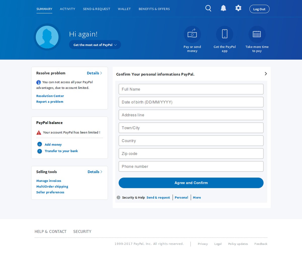 After filling in all information, clicking the “Agree and Confirm” button points users to a fake confirmation that the user’s account access is fully restored, which is odd because, as far as the user knows, they were paying the ransom, not addressing a problem about their PayPal accounts. Now, if the user hadn’t already realized that they had been duped twice, at this point they might.