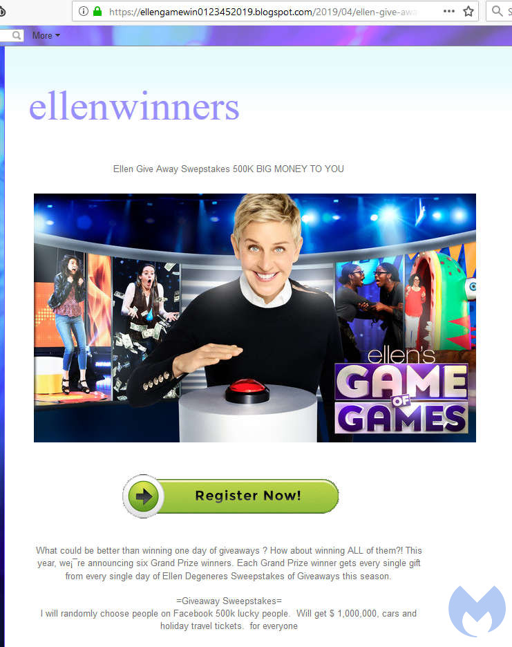 Well, this took a weird turn. A few of the links lead to a blogspot page touting “Ellen Degeneres givaways 2019.”