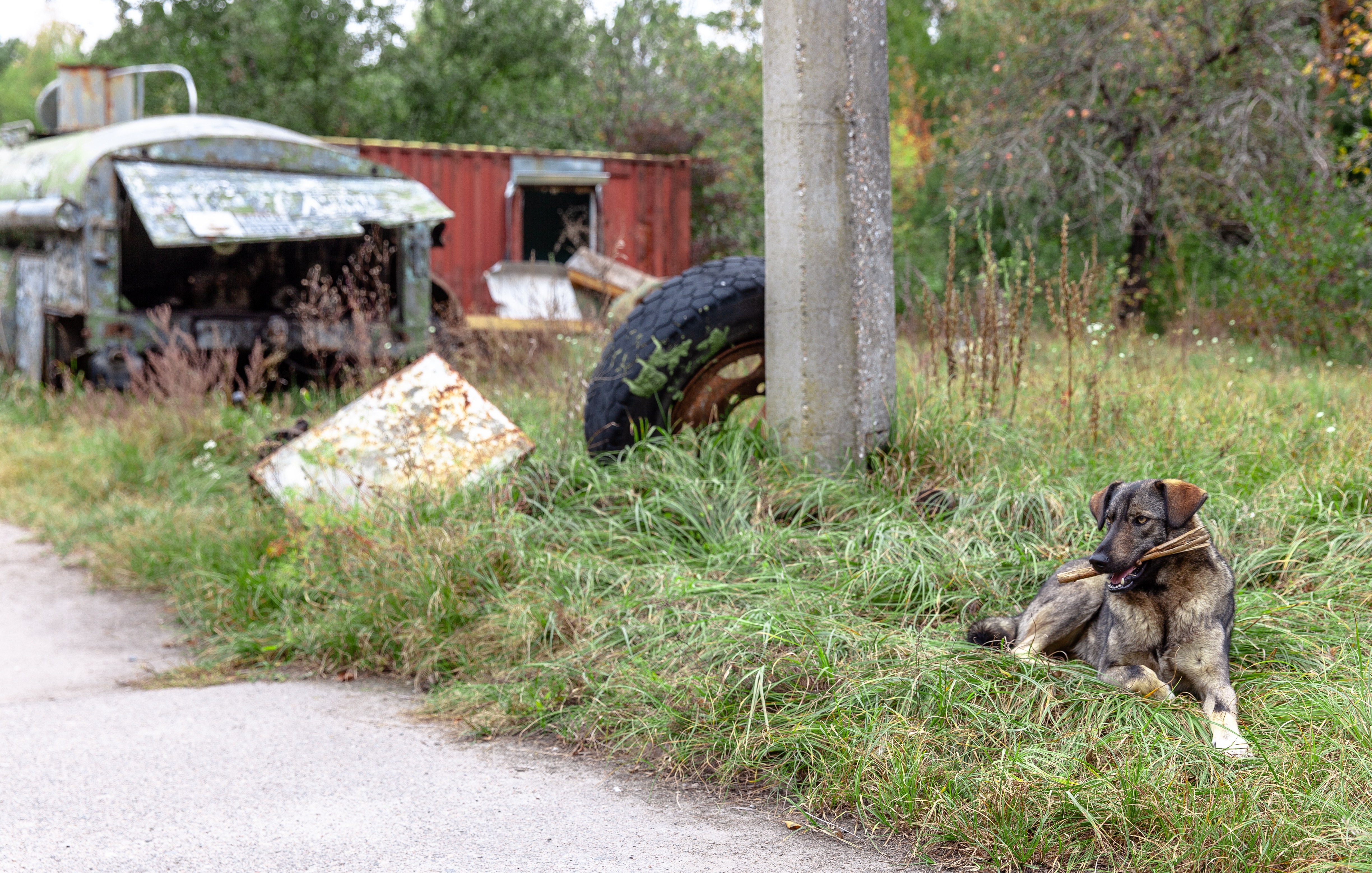 CHERNOBYL EXCLUSION ZONE, Ukraine—The stray dog looking directly at me was hard to resist. Her ears perked up, her fur appeared clean—free of mange, at any rate—and she held a large stick firmly between her jaws.