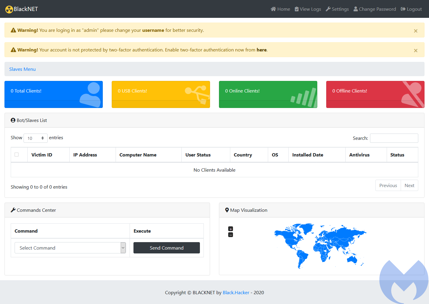 The command and control server hosted at instaboom-hello[.]site reveals the control panel for the BlackNET botnet.