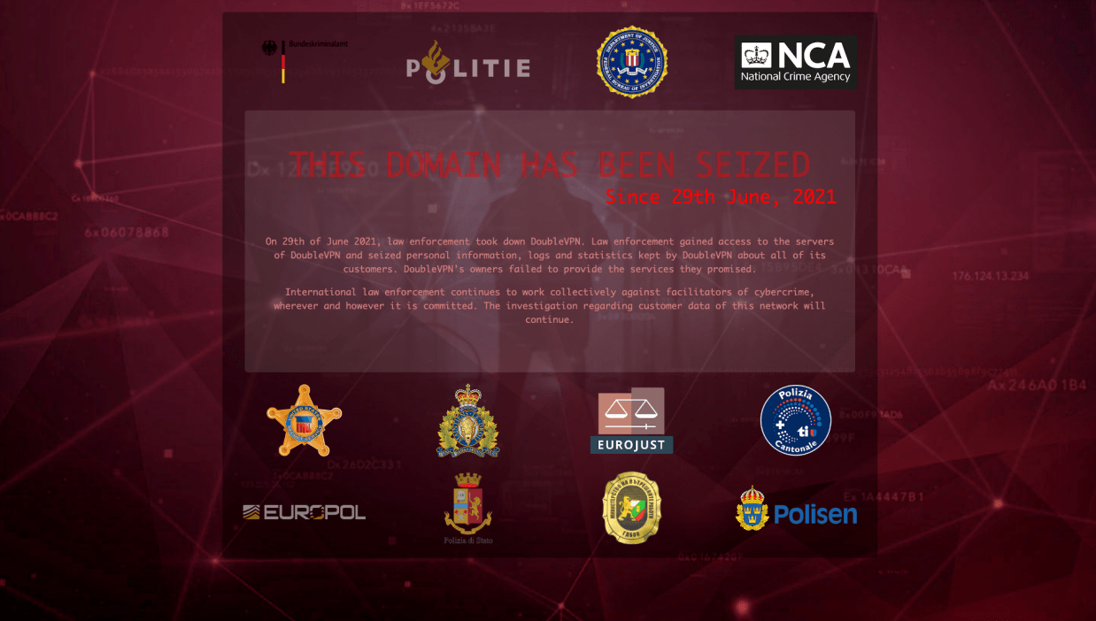 The service, called DoubleVPN, had its domain page seized on June 29. According to a splash page that has replaced DoubleVPN’s domain, in seizing the VPN’s infrastructure, law enforcement also seized “personal information, logs, and statistics kept by DoubleVPN about all of its customers.”