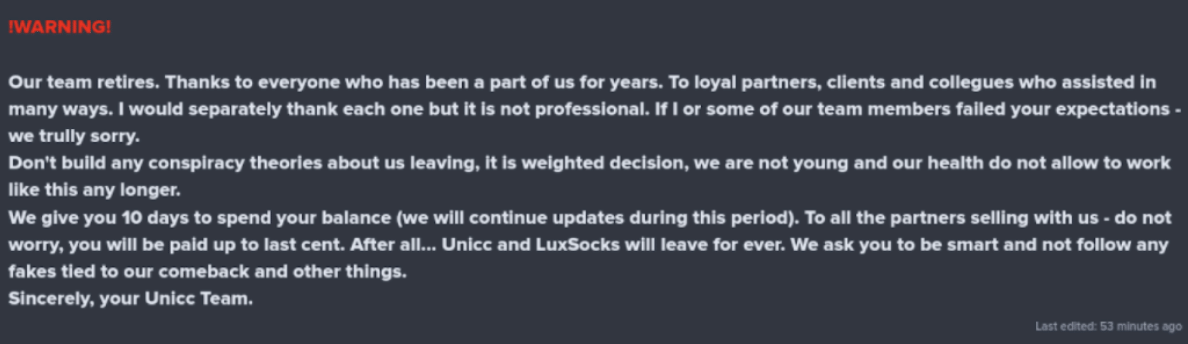 And so, after nearly a decade of being active, administrators have announced their “retirement” on a carding forum. The announcement is in both Russian and English.