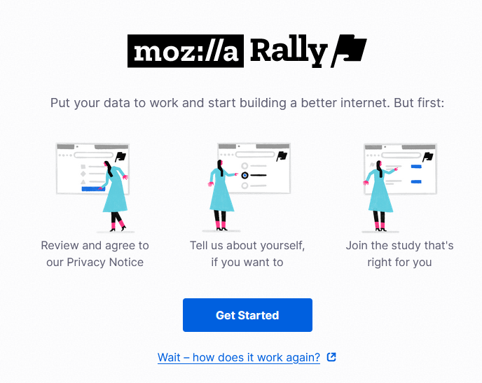 Taking part in the study is as easy as installing a browser add-on for Firefox. You can find the Rally add-on here. After installing you will see this explanatory page: