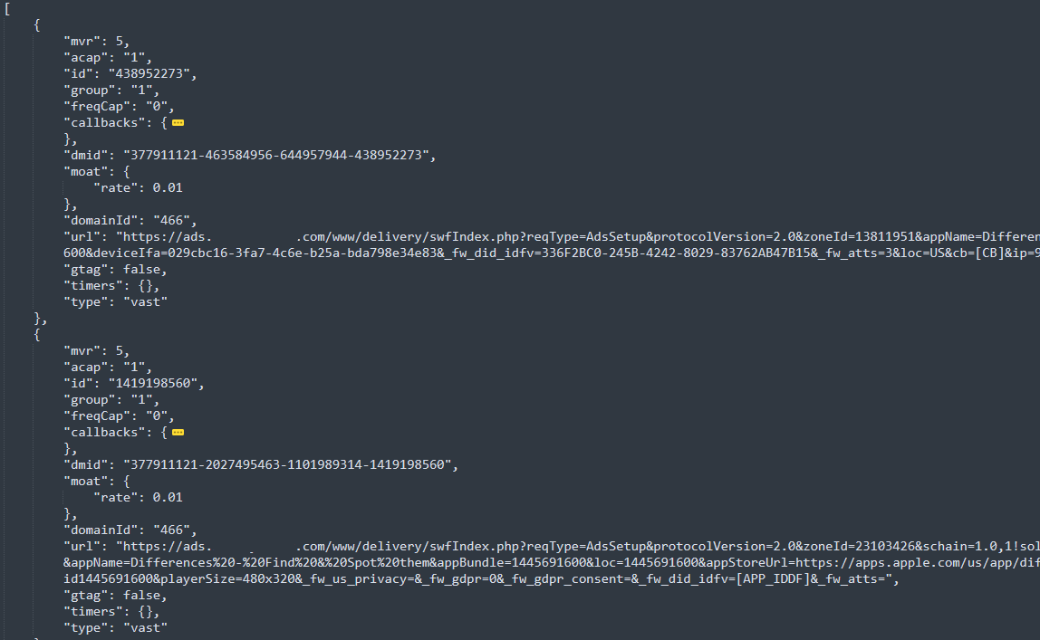 The researchers say VASTFLUX spoofs legitimate publisher and app IDs, including the size of the ads, and operators do it in a way that could easily be missed with cursory glances at the code. The code also contained masked instructions on what apps to spoof, how to spoof them, and how video players can be stacked up to play 25 streams with ads. These ads generate income, but the videos they play on are hidden behind a visible ad, rendering the video stack invisible to users.