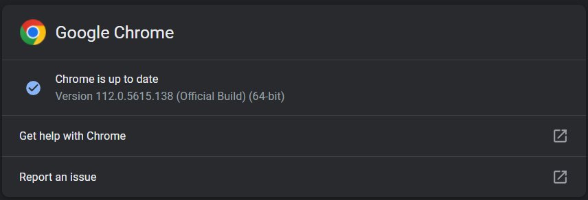 Chrome will notify you of the version you’re on and if there’s an update available. Once you’ve downloaded the update, reload the browser and everything should be good to go. If everything has worked as it should, your version should in theory be running the latest version. At the time of writing the most recent update being offered is now 112.0.5615.138.
