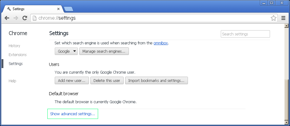 Next, scroll to the bottom of the settings tab and select ‘Show Advanced Settings’