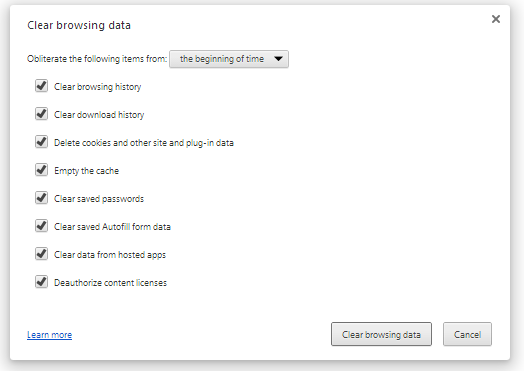 I highly recommend deleting EVERYTHING from THE BEGINNING OF TIME but that is just me, you should be good just deleting your browsing history, download history, cookies and plug-in data and emptying the cache, I still recommend from THE BEGINNING OF TIME though.