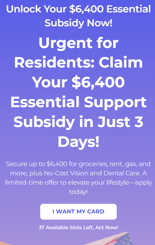 - “Get a $6,400 Subsidy to Pay for Groceries, Rent, and Gas!”