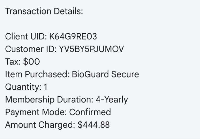 - Multiple ID lines, such as Membership ID, Client UID, Customer ID, Service Number