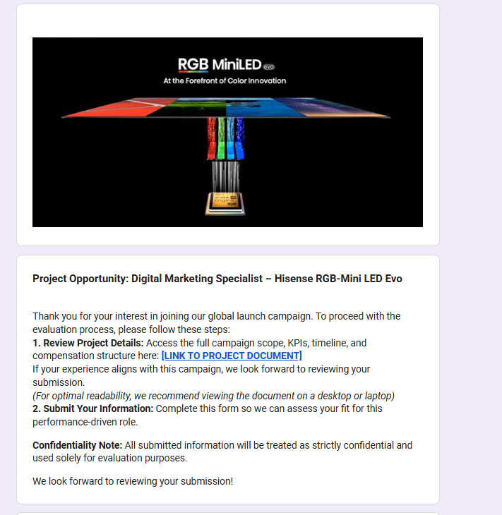 In our research, we found multiple Google Forms hosting links to malicious ZIP files that start the infection chain. These forms are convincing, impersonating real company names, logos and links. LinkedIn is one of the platforms used to send links to these malicious forms.