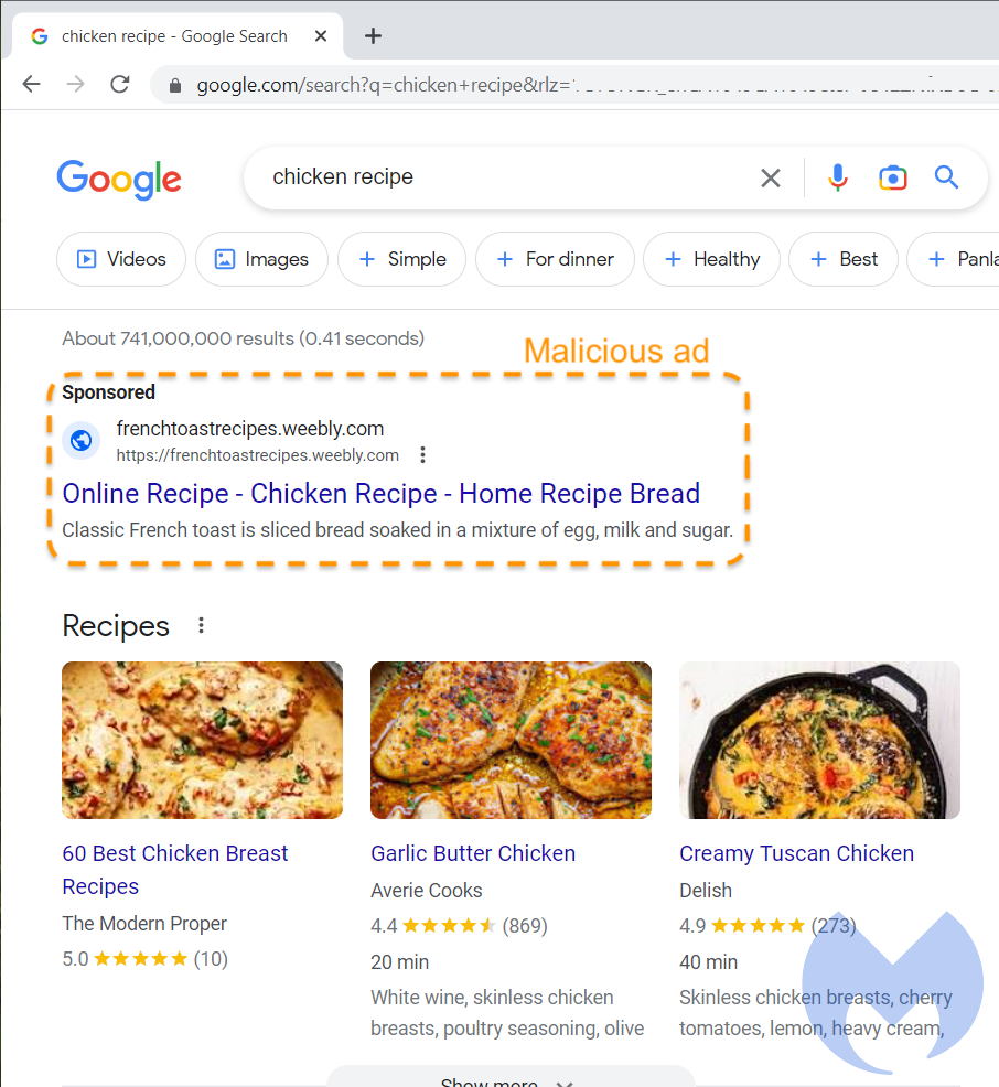 By far, anything related to recipes and cooking is a popular search query. We had previously identified another malvertising campaign using this same theme.