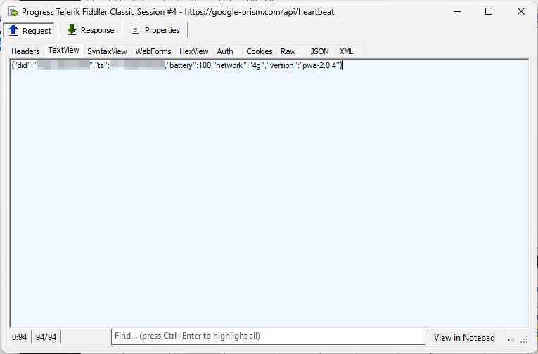 Sur les navigateurs basés sur Chromium, le service worker comprend un gestionnaire pour la synchronisation périodique en arrière-plan sous la balise c2-checkin, ce qui permet des réactivations programmées lorsque la fonctionnalité est prise en charge et activée. Combiné à des pulsations déclenchées par push, cela signifie que l'attaquant peut maintenir le contact avec un appareil compromis tant que l'application web progressive (PWA) reste installée, ce qui peut durer des semaines, voire des mois.