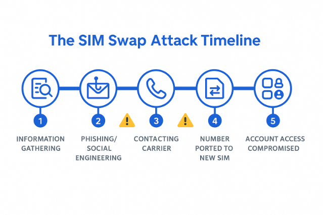Com essas informações, eles entram em contato com sua operadora de celular, às vezes por telefone, outras vezes pelo suporte online. Fingindo ser você, eles alegam que o cartão SIM foi perdido ou danificado e solicitam que o número seja transferido para um novo SIM. Se a operadora aprovar a solicitação, seu número será ativado instantaneamente no dispositivo do golpista.